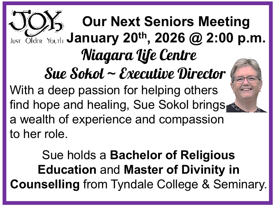 Our next Seniors meeting will be January 20, 2026 at 2:00 p.m.